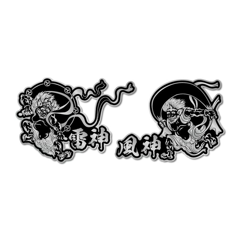 - (マットミラー)風神 雷神 銀ステッカー 銀文字 10cm 9cm ワンポイント 縁起物 守り神 和風 カッティング