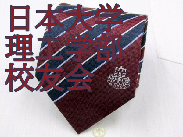 - 【日本大学理工学部校友会】 OD 455 日本大学理工学部校友会 ネクタイ 紺 赤系 ストライプ ワンポイント ブランドロゴ ジャガード