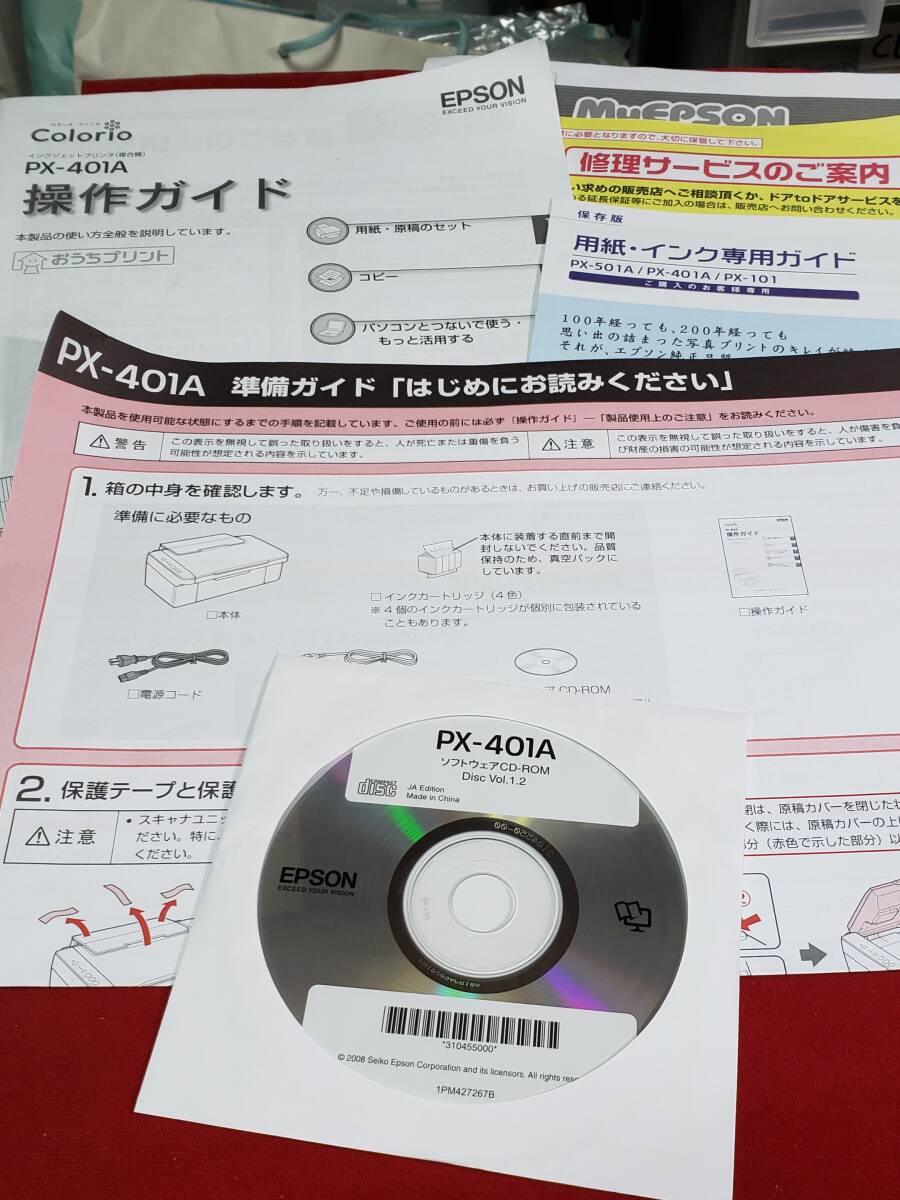 - マニュアルのみの出品です M3847 EPSON PX-401A プリンタ 操作ガイド マニュアルのみで機器は無 システムディスク Vol.1.2 盤面キレイ