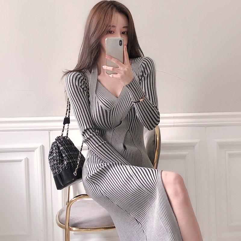 - 高品質新品レディースワンピース大人sexy OL通勤 二次会ドレス 美尻美胸美脚 0ネック ニットワンピお色選択可