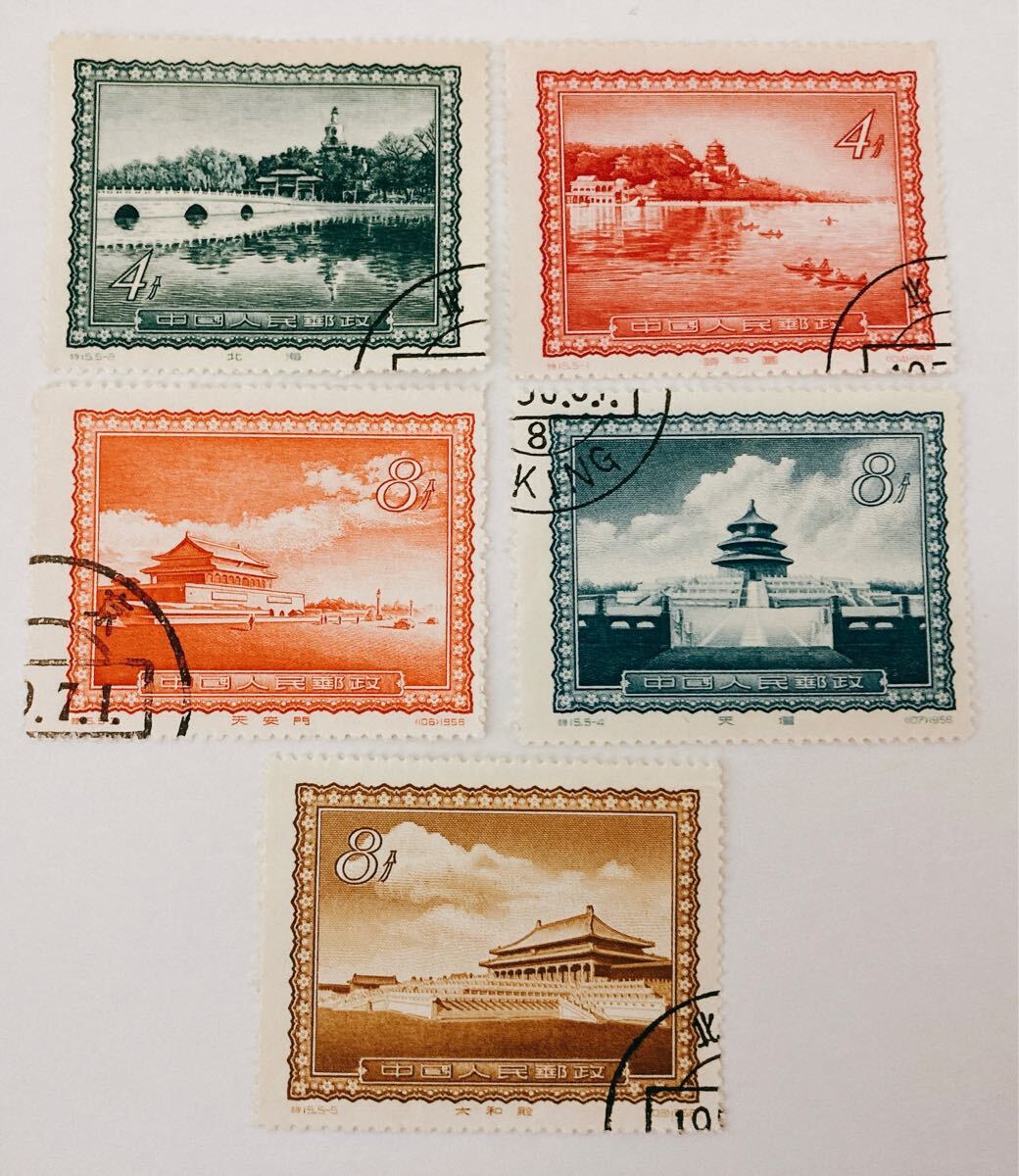 - 中国切手 特15 北京の名勝 5種 消印有り