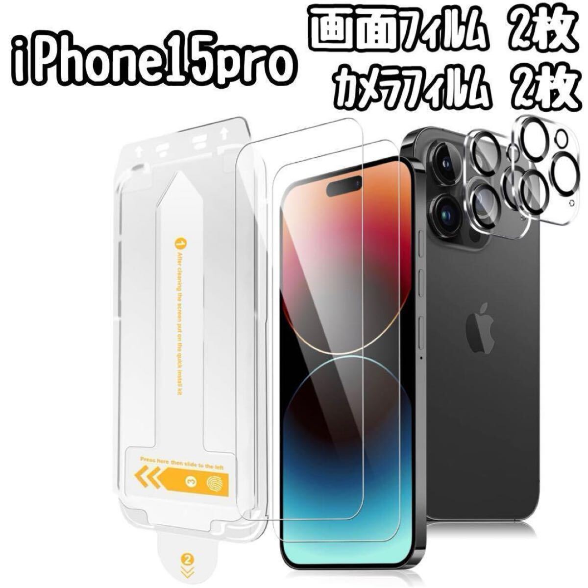 - iPhone15 Proフィルム 画面フィルム2枚 カメラフィル厶 2枚