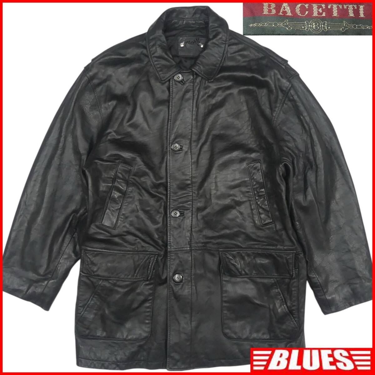 - 即決★BACETTI★メンズ L レザーステンカラーコート バチェッティ 黒 本革 ジャケット 本皮 革ジャン ロングコート キルティング