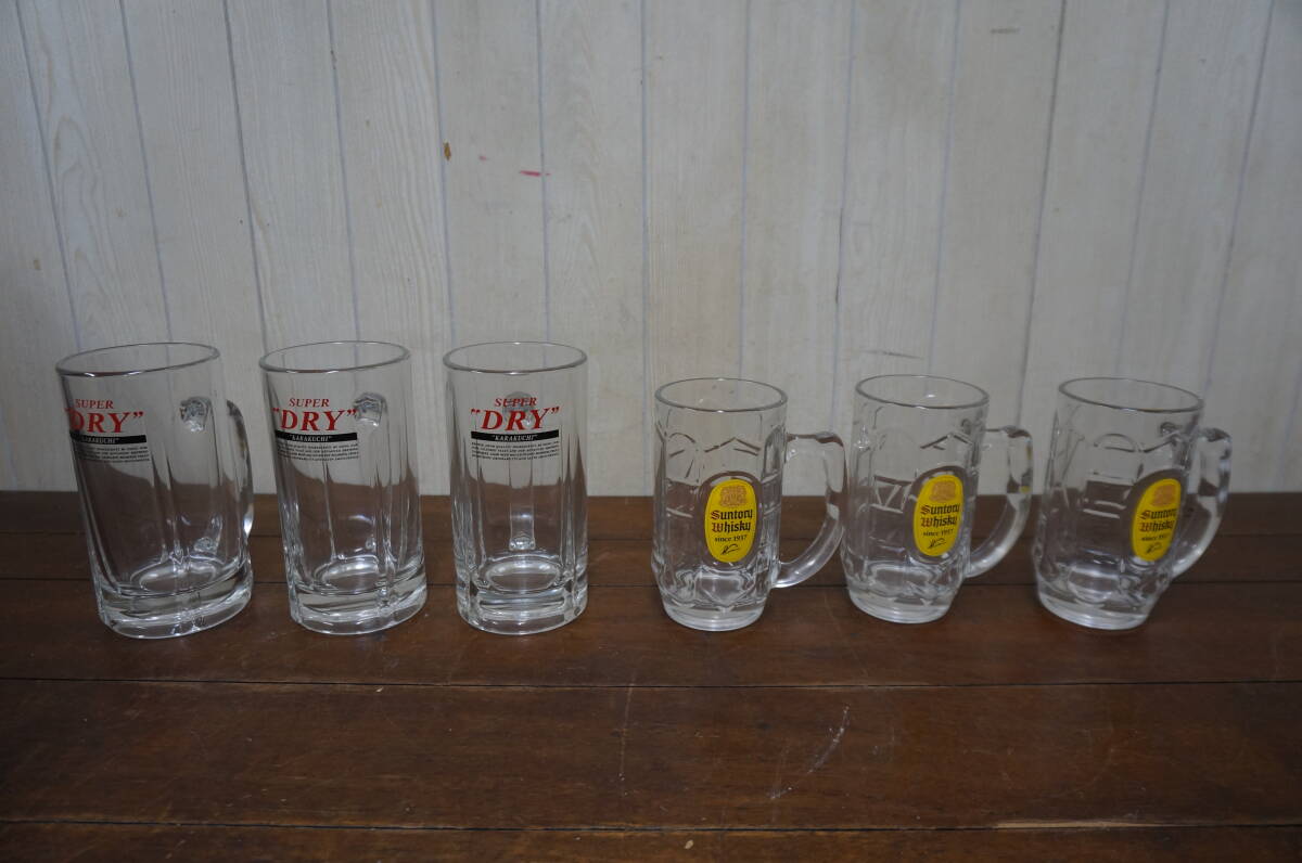 - 中古品☆アサヒビール☆スーパードライビールジョッキ☆サントリーウィスキージョッキ☆6点まとめ売り☆412S4-J15943