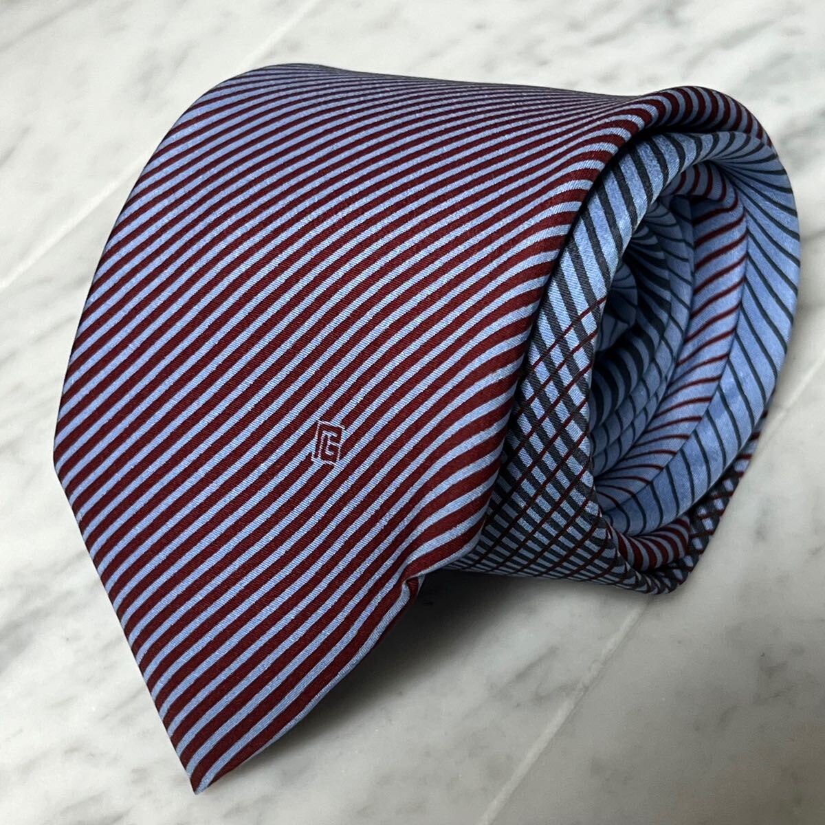 - 【未使用】 999円~ ピエールバルマン ネクタイ ブルー系 レッド ストライプ チェック柄 ワンポイントロゴ (B10)