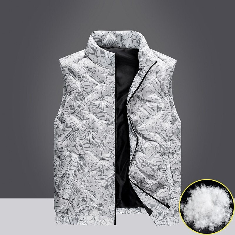 - OHJ1145★ダウンベスト メンズ 防寒 ベスト 厚手ベスト 白ダウン 葉柄 無地 キルティング ハイネック 暖かアウター 軽めベスト 白5XL