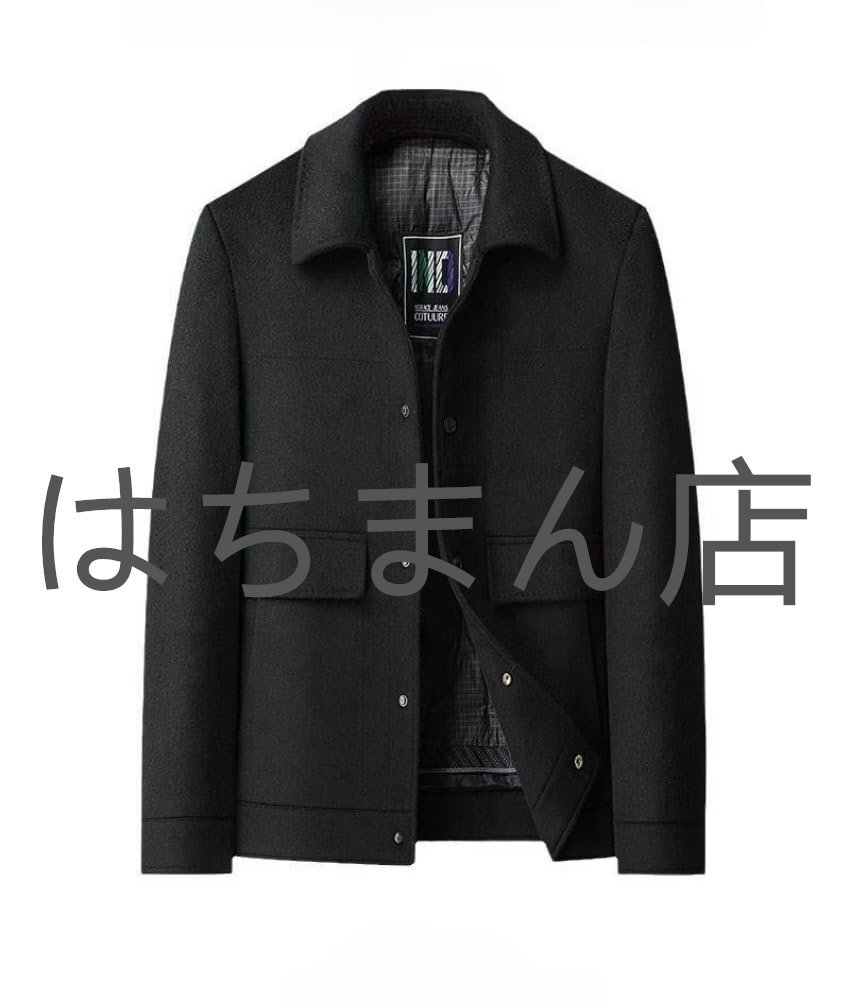 > ウールコート メンズ ダウンジャケット ハーフコート ライナー付き ダウンライナー脱着可 長袖 暖かい 冬服 防寒着 ブラック M-4XL