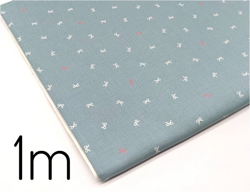 > 【1m】小さなリボン柄 ミントグリーン★綿 コットン シーチング★ハギレ 生地 布 カットクロス 手芸 裁縫 シンプル りぼん YUWA 有輪商店