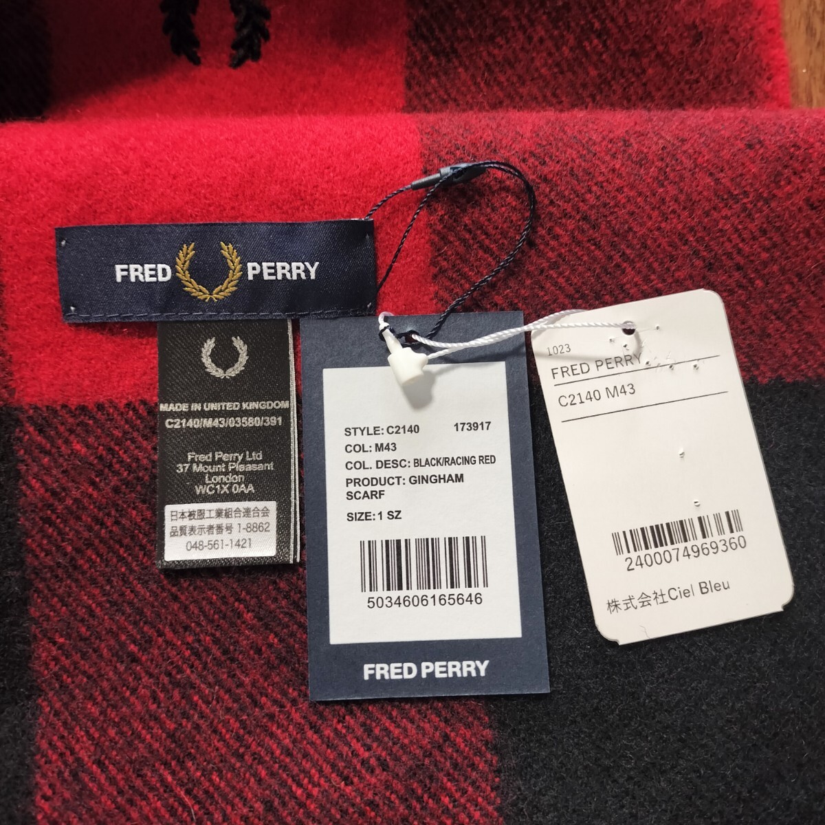 - FRED PERRY(フレッドペリー)②赤チェックマフラー新品 未使用 タグ付き