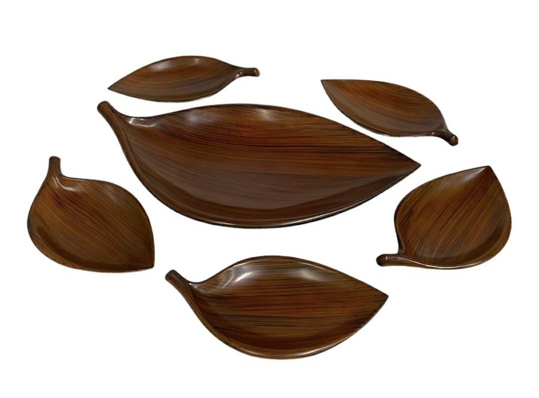 - リーフ型 葉っぱ プレートセット 木目調 大皿 銘々皿 24の417