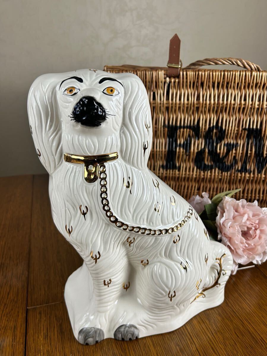 - 英国 アンティーク ヴィクトリア時代 スタッフォードシャードッグ ラージサイズ ホワイトxゴールド シングル ②