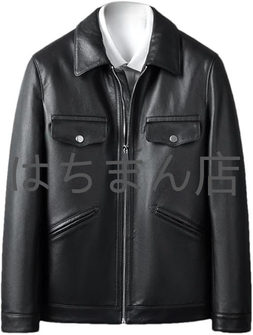 - 牛革ジャケット メンズ 男性 牛革 革ジャン 皮 カジュアル 本革ジャケット ライダースジャケット レザージャケット 秋冬 ブラック L-5XL