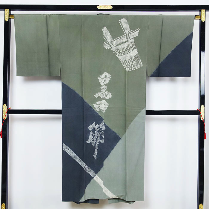 - 男物 長襦袢 袷仕立て 絞り柄 酒樽 黒田節 適用身長約170cm位 正絹 10888