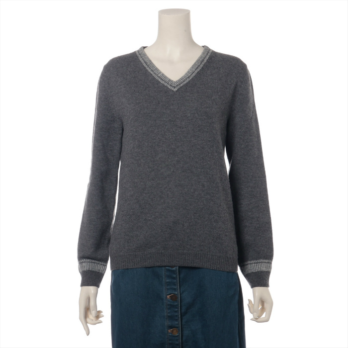 - エルメス (HERMES) Vネック ニット セーター #34 グレー(中古)