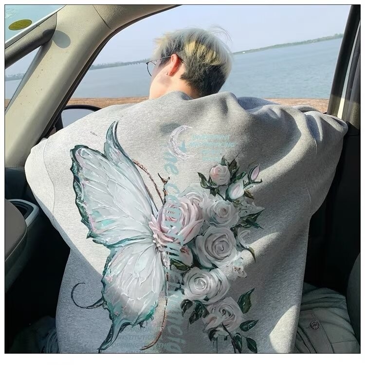 > メンズ トレーナー 裏起毛 厚手 トップス ペアルック 大きいサイズ 韓国風 長袖 丸首 プリント 花柄 ゆったり 秋冬 4色M-5XL