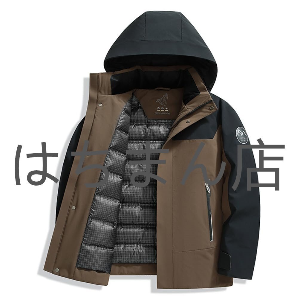 - ダウンジャケット メンズ フード付き ジャケット 厚手 ダウンコート アウター 男性 ファッション 秋 冬 防寒 防風 紳士用 ブラウン M-4XL