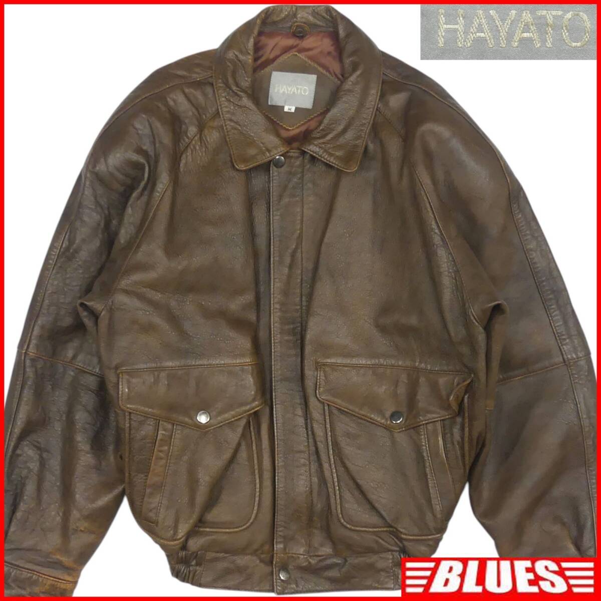 - 即決★HAYATO★メンズ M レザーフライトジャケット ハヤト 茶 本革 ブルゾン 本皮 ミリタリージャケット ジャンパー