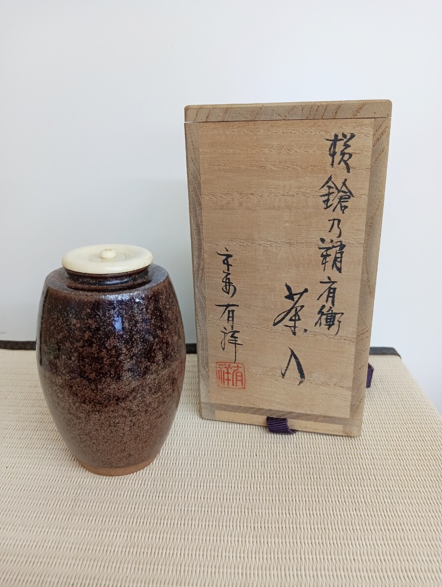 - 大名物 鎗の鞘 肩衝茶入 笹田有祥 箱付