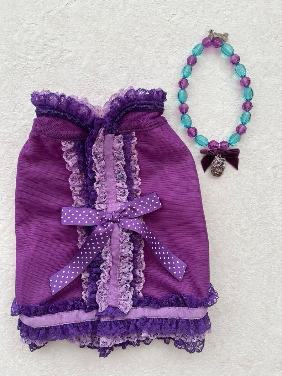 > ★大幅値下!即決!セール★【for pets only】フォーペッツオンリー/サイズS/パープルドレス&ネックレスセット/made in Italy/超小型犬服