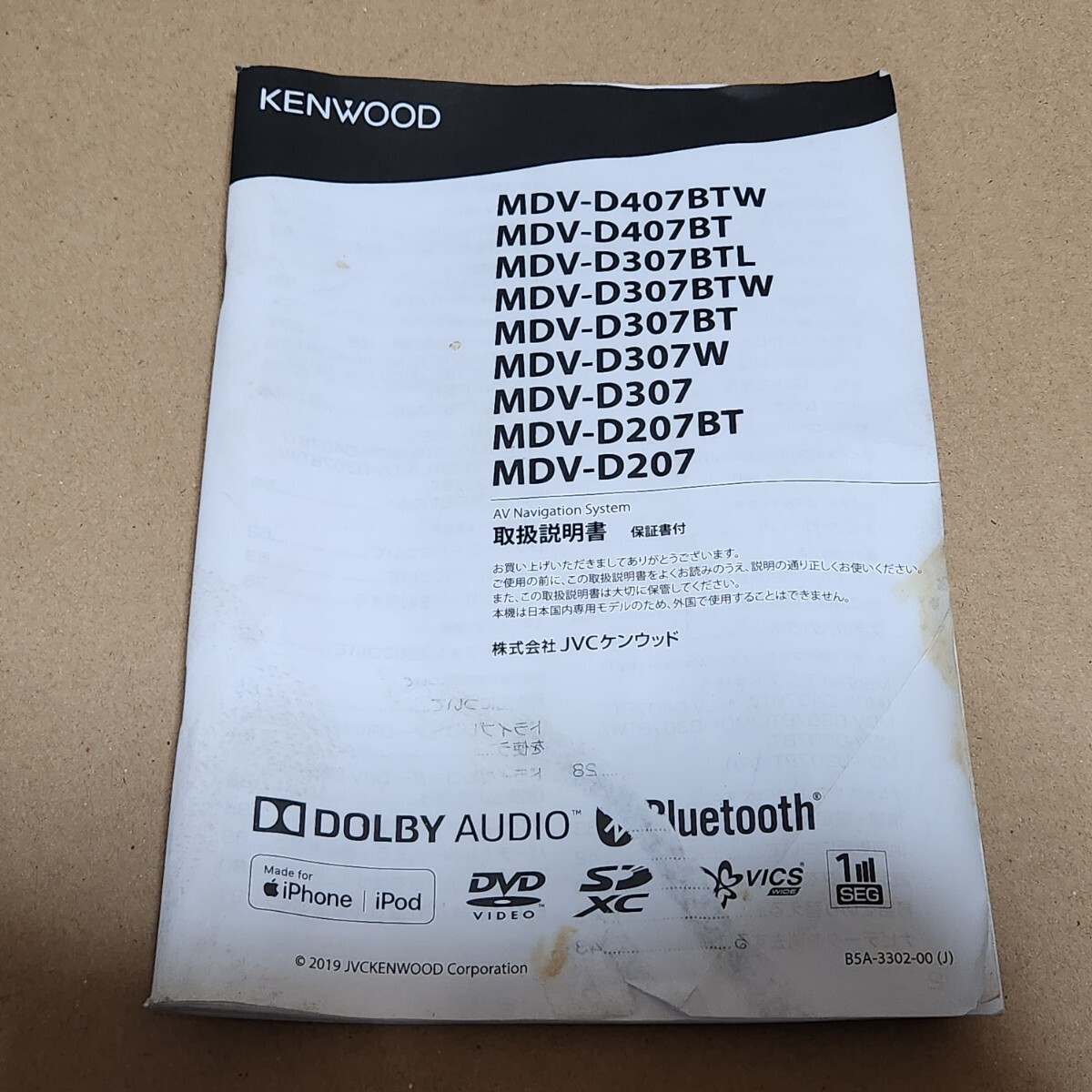 - KENWOOD ケンウッド 取説のみ MDV-D407BTW D407BT D307BTL D307BTW D307BT D307W D307 D207BT D207 取扱説明書 取扱書 マニュアル