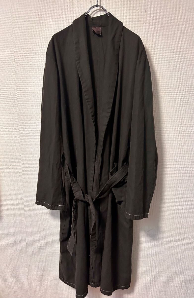 - ビンテージ チェコ軍 ショールカラー ガウン コート 後染め 黒 ヘリンボーン/ユーロミリタリー ヨーロッパビンテージ