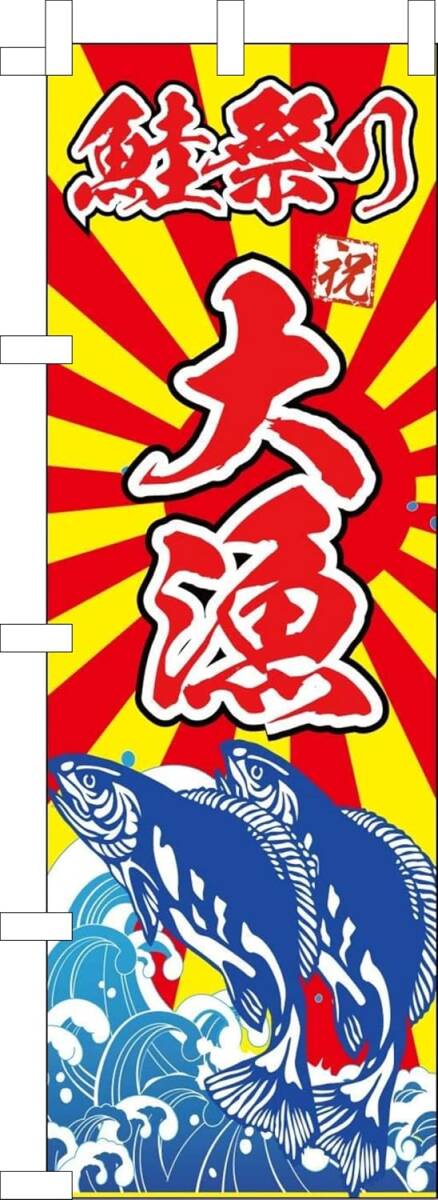 - のぼり旗「鮭祭り のぼり鮭祭 幟旗サケ祭り 大漁旗 大漁祭り 大漁祭 鮭 サケ サーモン シャケ 海の幸 イクラ 新鮮魚介 北海道」送料360円