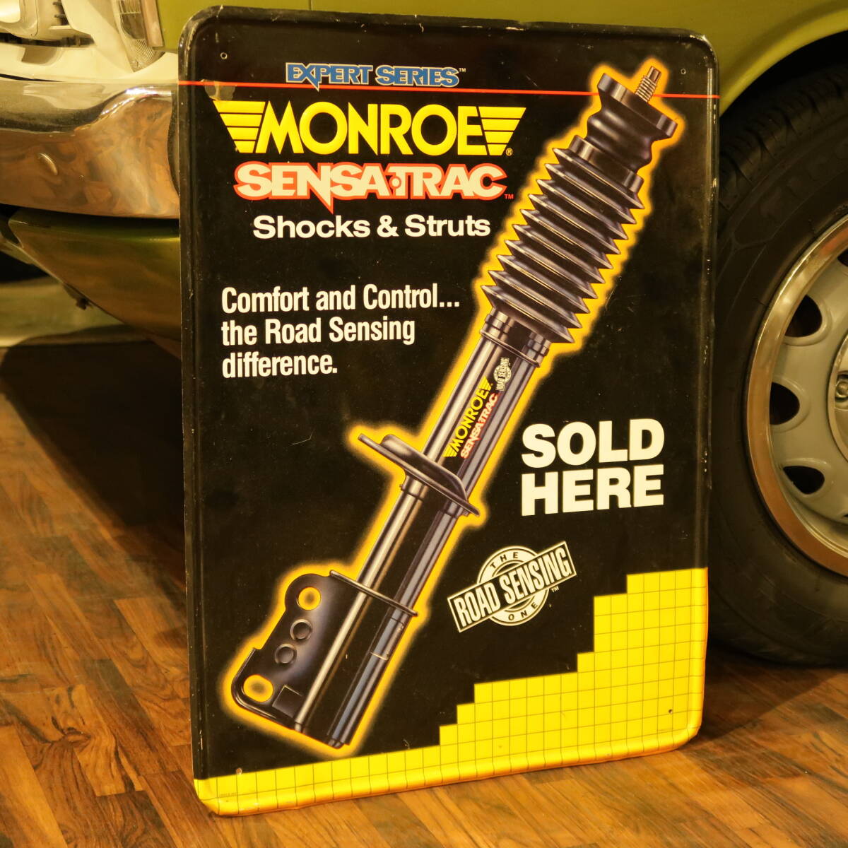 - MONROE GAS CHARGED ビンテージ サイン USA 看板 モンローショック ガレージ 店舗什器 ディスプレイ 雑貨 FIRESTONE 世田谷