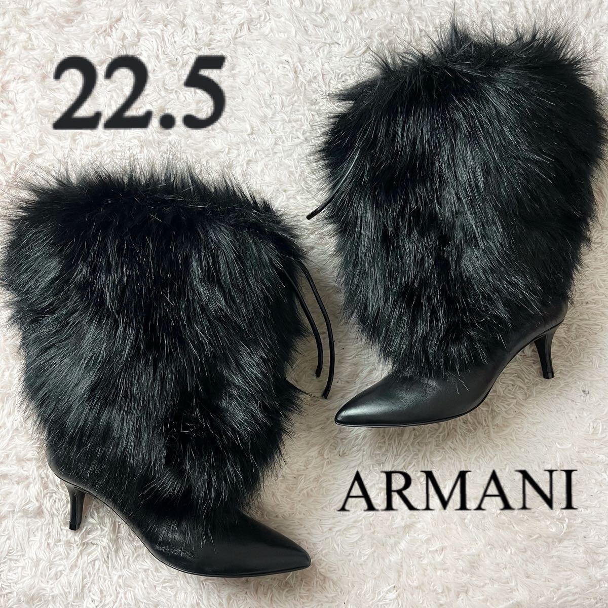 > EMPORIO ARMANI エンポリオアルマーニ ファーブーツ レザーブーツ 本革 本皮 毛皮 ブーティー ショートブーツ 黒 ブラック 35 22.5cm相当