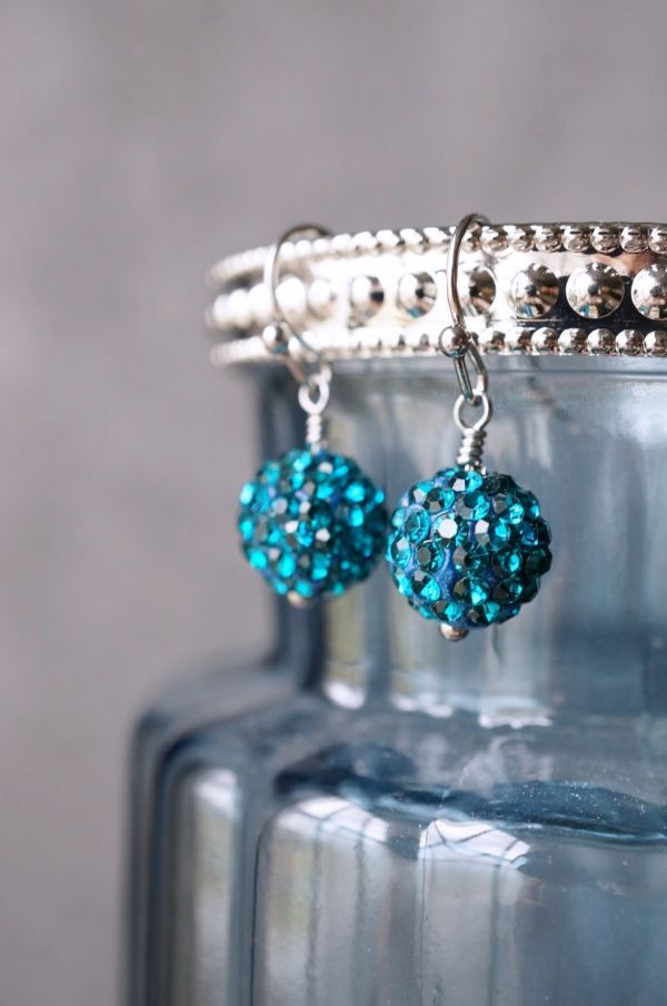 - サージカルステンレス ピアス 419 パヴェボール 濃ブルー 金属アレルギー対応金具使用