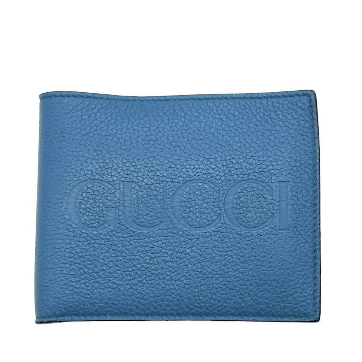 > GUCCI グッチ ロゴ ウォレット ブルー レザー 二つ折り財布 エンボスロゴ 財布 小銭入れあり コインウォレット
