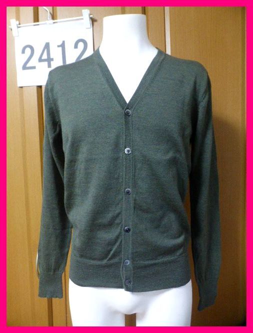 > 送料無料★無印良品・カーディガンSS/S グリーン シルク混ウール 比較的薄手なのでジャケットインナーとしても◎ シンプルデザイン