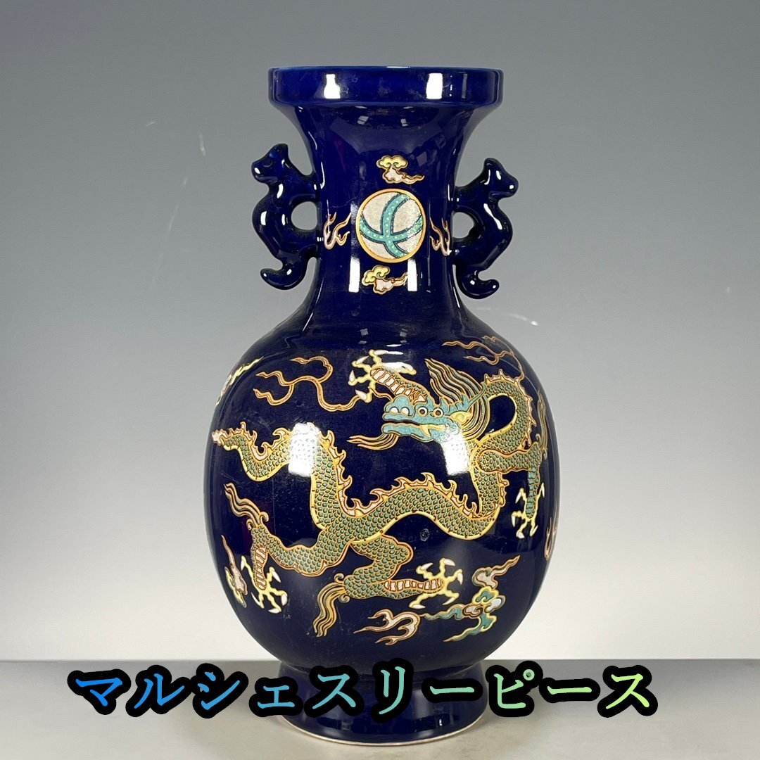 - 超美品! 清 雍正 夜光磁器 青釉 龍紋 双耳賞瓶 花瓶 胆瓶 賞瓶 観賞 装飾 磁器 中国陶磁 中国美術 コレクション
