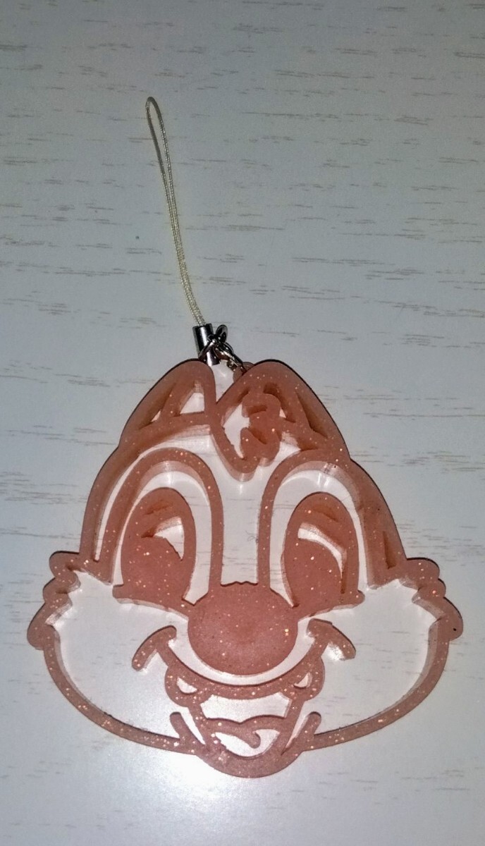 - チップ&デール 紐キーホルダー キラキラふにゃふにゃ 可愛い ビッグフェイス 顔型ピンク系 ディズニー キャラクター コレクション