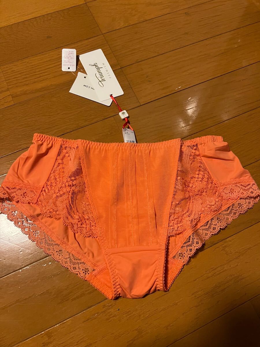 - triumph トリンプ プレミアムレーベル TR3061PT高級ショーツ フロント刺繍オレンジ色 新品未使用です。Mヒップハング