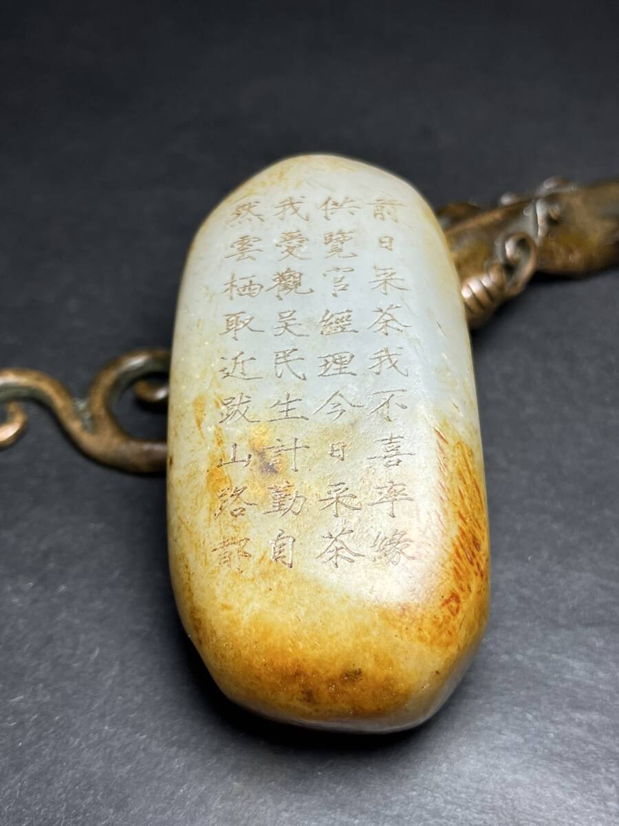 - 旧蔵 明清時期 玉彫 和田玉 原石 詩文 手玩件 極細工 古美術 古美味 201-05