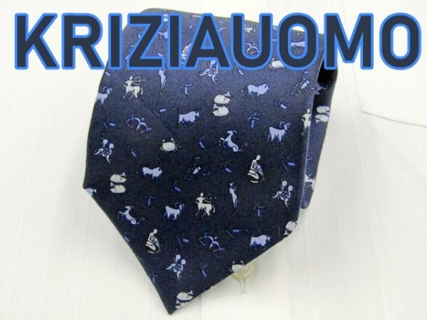 > 【クリッツアウォモ】 OD 509 クリッツアウォモ KRIZIAUOMO ネクタイ 紺系 ドット アニマル ワンポイント ブランドロゴ プリント