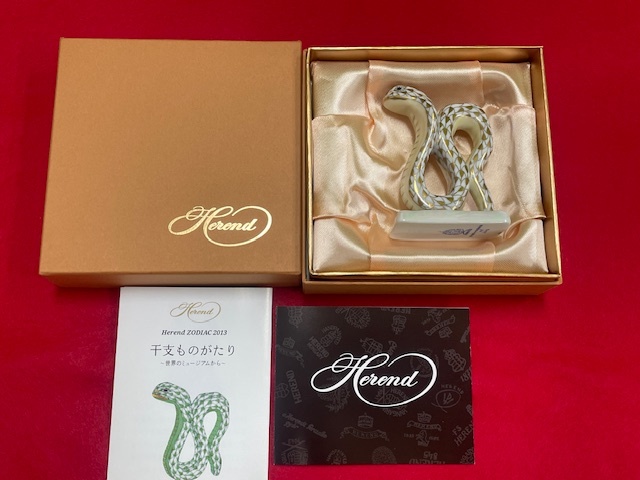 - 未使用品 HEREND ヘレンド ヘビ 巳 蛇 へび 干支ものがたり 2013 イヤー フィギュリン 置物 ゴールド 箱・カード付 即日配送