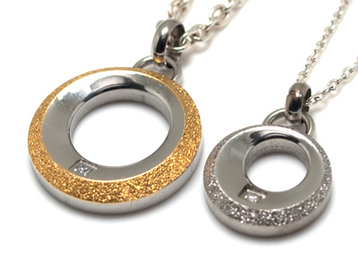 - ★お勧め★金属アレルギー&温泉&海水浴ご使用OK★ステンレスペアネックレス★ゴールドコンビ&シルバーサークル&ジルコニア★