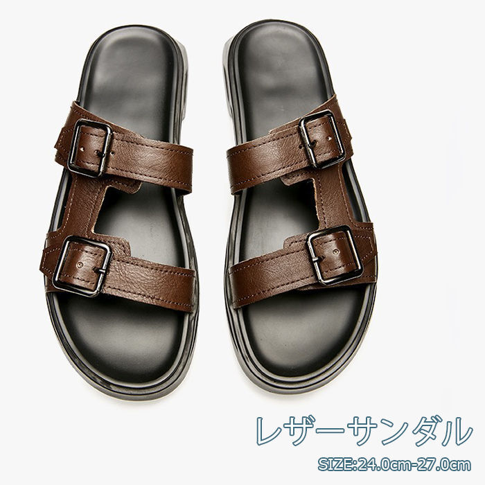 > スリッパ メンズ サンダル オープントゥ ビーチサンダル 本革 スリッパ レザーサンダル 男性 スリッパ Zxe1141-1 27.0cm