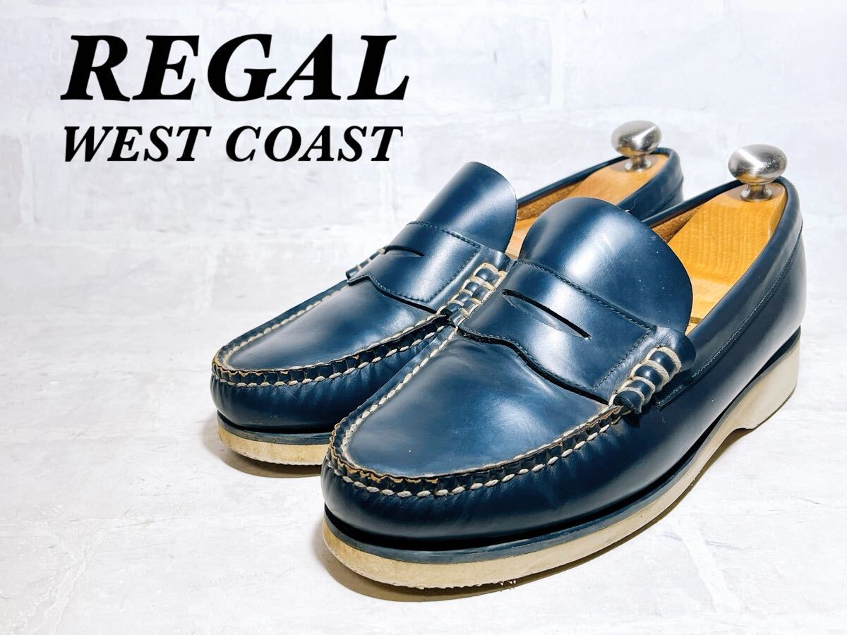 - 【美品】REGAL WEST COAST リーガル 上質 コインローファー 本革 レザー ネイビー 紺 24cm メンズ 紳士靴