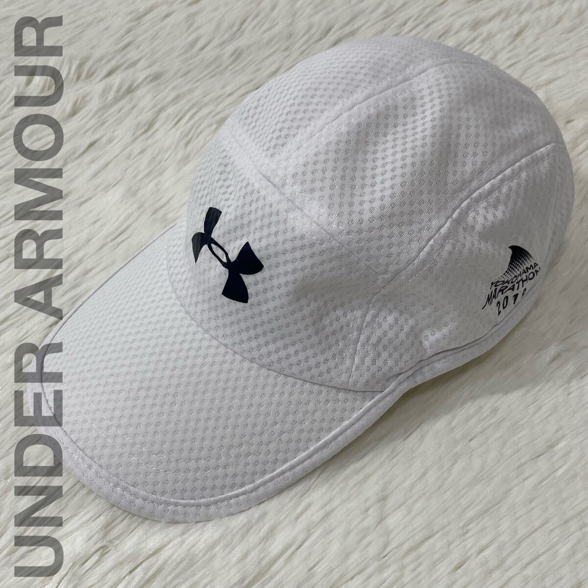- UNDER ARMOUR アンダーアーマー 横浜マラソン 2018 ロゴ プリント 5パネル メッシュ キャップ 帽子 ホワイト CP060