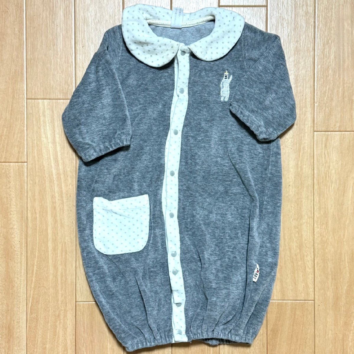- カバーオール ベビー 2way ロンパース パイル地 ドット グレー 白くま 関西ファッション連合 50 - 70cm