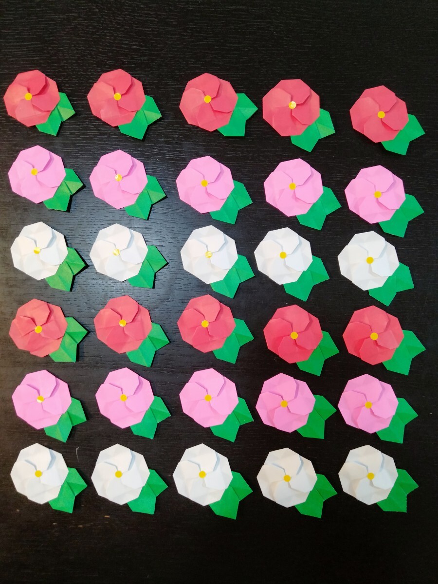 - 手作りハンドメイド折り紙細工★椿の花びら♪赤白ピンク3色各10個計30個 壁面飾、ラッピング、リース素材に