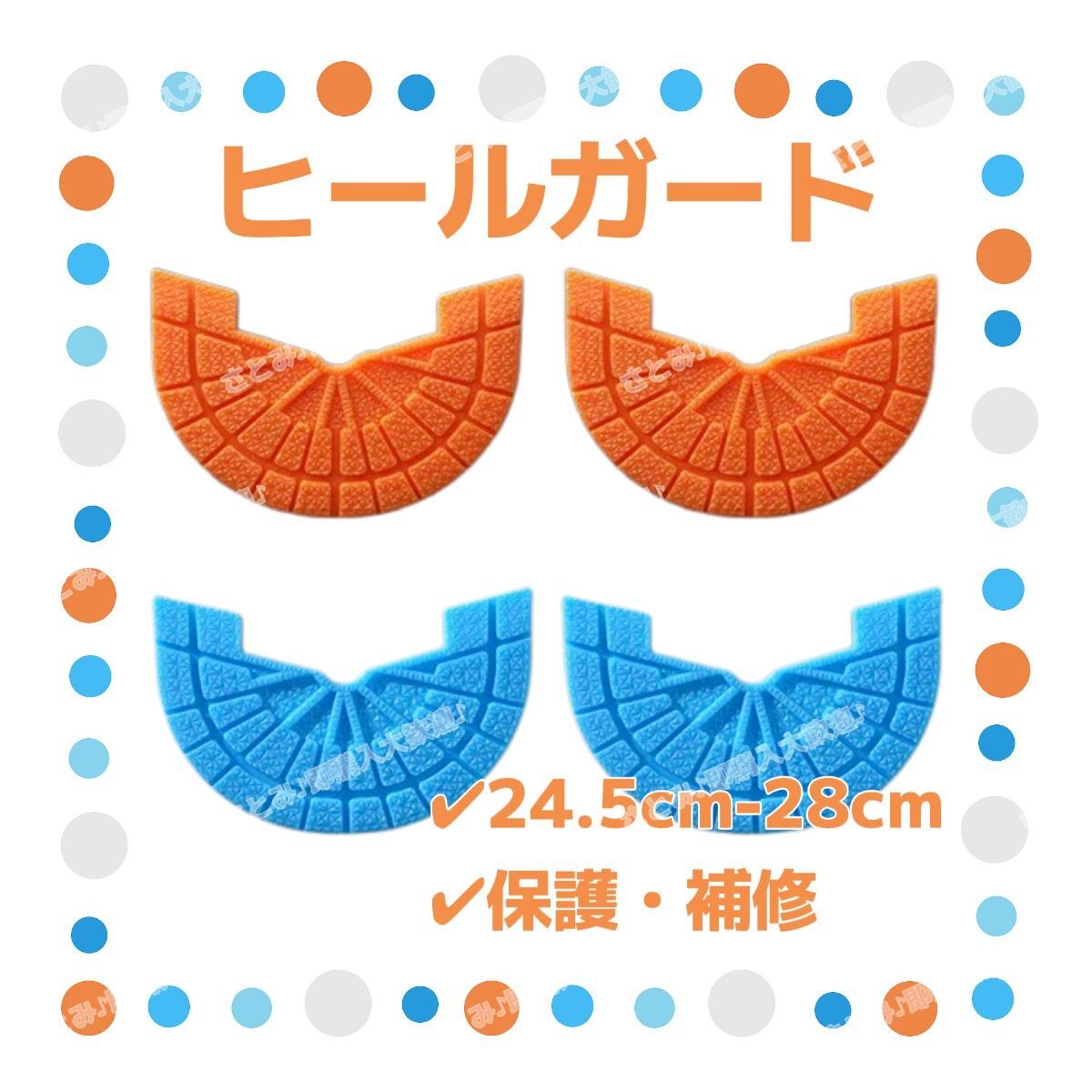 - ヒールガード 4枚セット 2足分 ソールガード スニーカー プロテクター 保護 補修 24.5cm-28cm オレンジ 水色