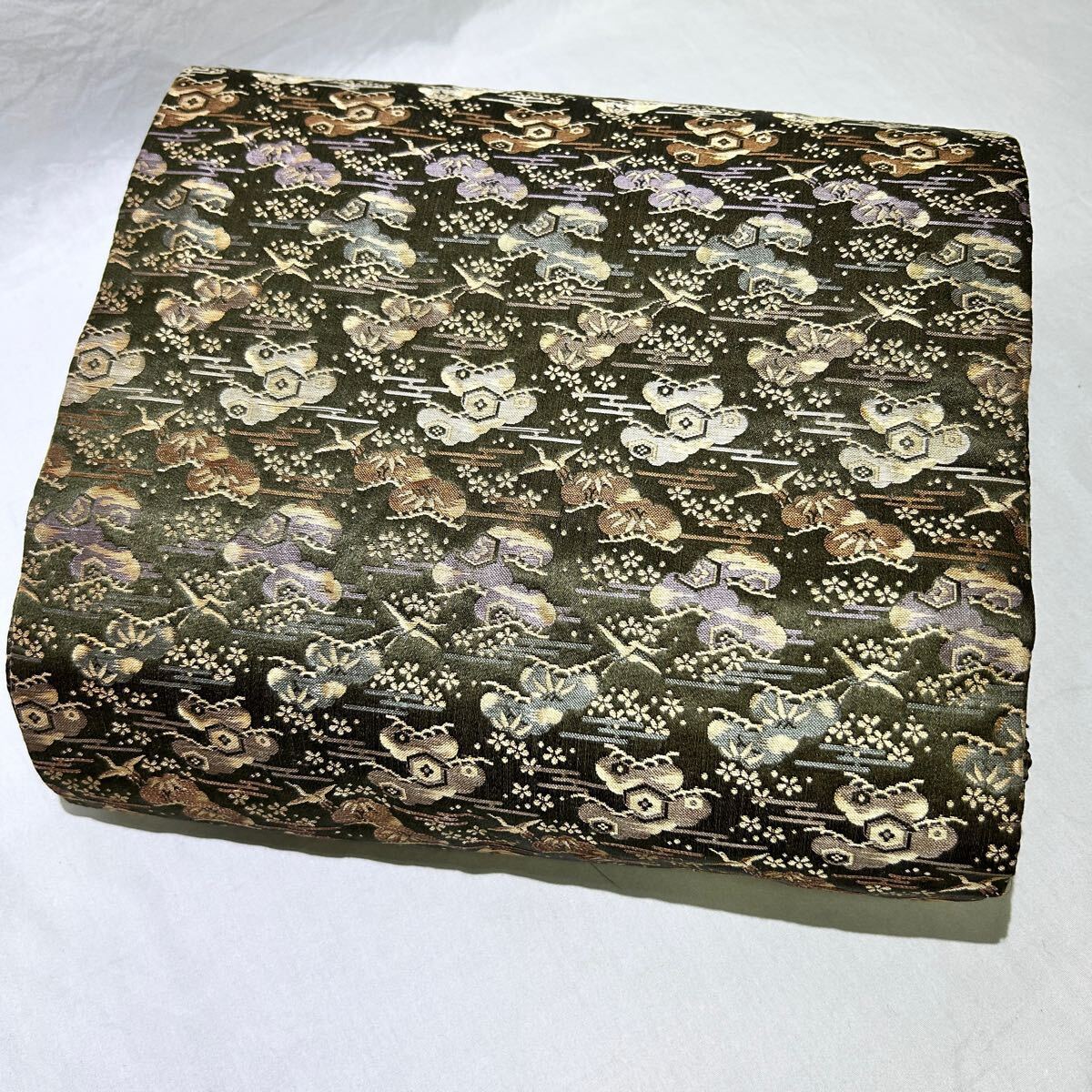 - ★美品★アンティーク帯 着物 正絹 昭和レトロ 和装小物 全通 鶴柄 松柄 亀甲 吉祥模様 長さ約352cm 幅約26.5cm 古着 当時物 (01117①並