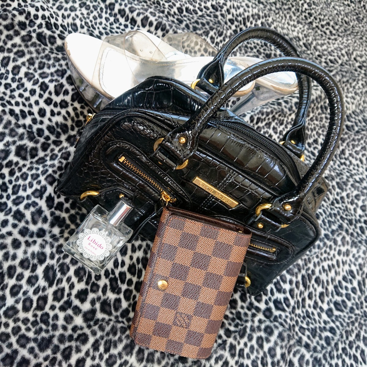 > ☆CECIL McBEE☆セシルマクビー・クロコ型押しバッグ・エナメル黒・黒金・化粧ポーチ・ギャル系・キャバ嬢・お水系・中古・愛用品