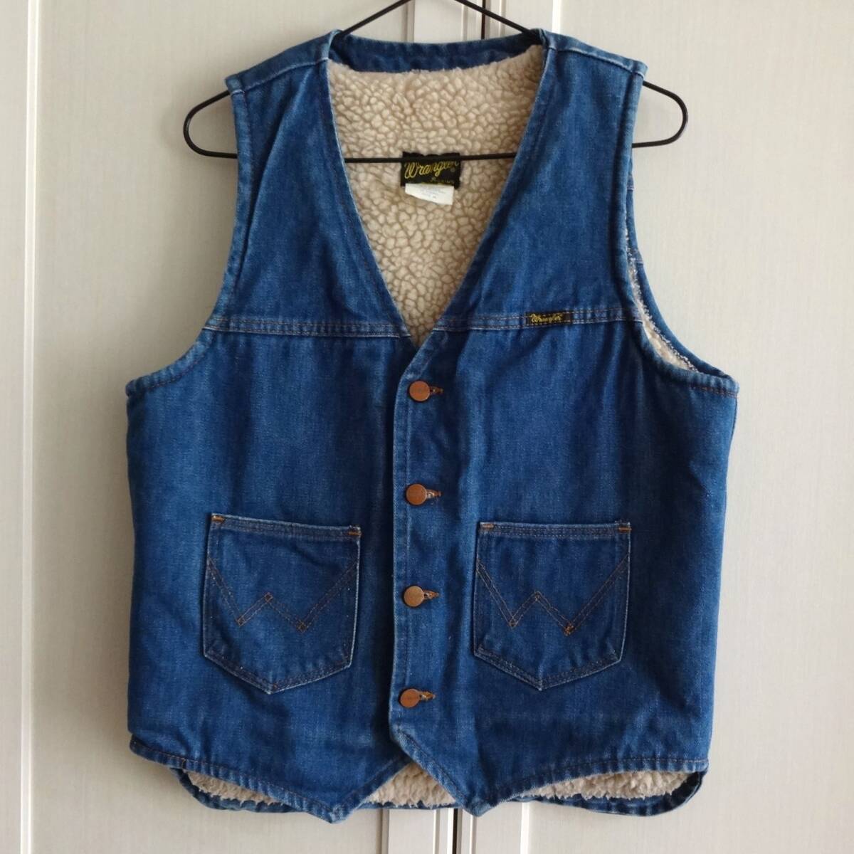 - MADE IN USA アメリカ製 Wrangler 内ボア デニムベスト VL200NV 紺 M■ラングラー ビンテージ 起毛 裏ボア■アメカジ 古着 USED 80s 90s