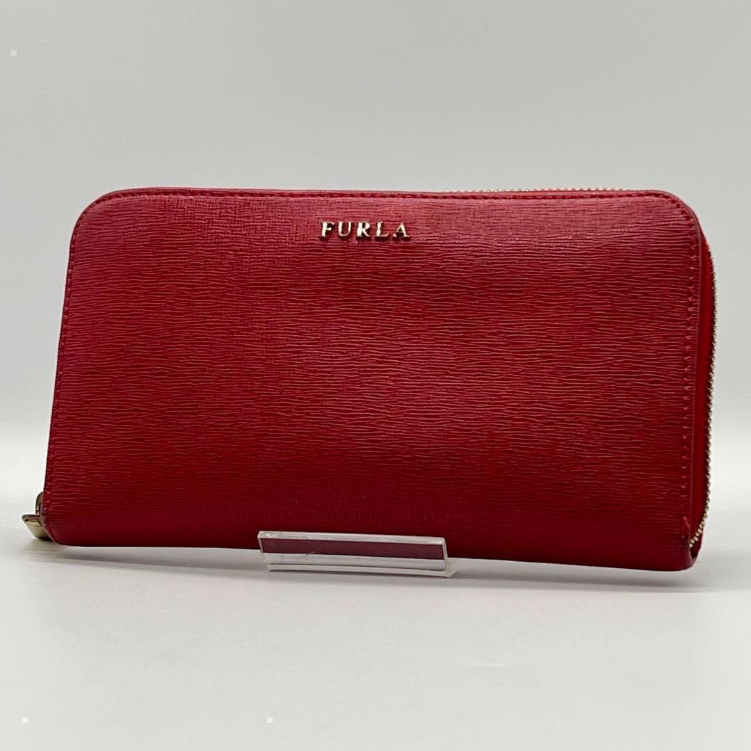 - 【美品】FURLA フルラ 長財布 ラウンドファスナー ロングウォレット フォーマル エレガンス レディース レッド JJ000128