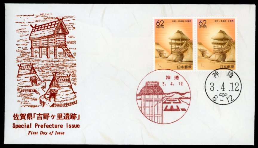 - 1313 【FDC】ふるさと 佐賀県「吉野ヶ里遺跡」[神埼/3.4.12/鳴美版](解説書なし)