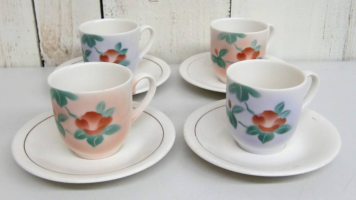 > アンティーク *九谷焼 *カップアンドソーサー *4客 4点まとめ セット *花柄 食器 *ヴィンテージ コレクション
